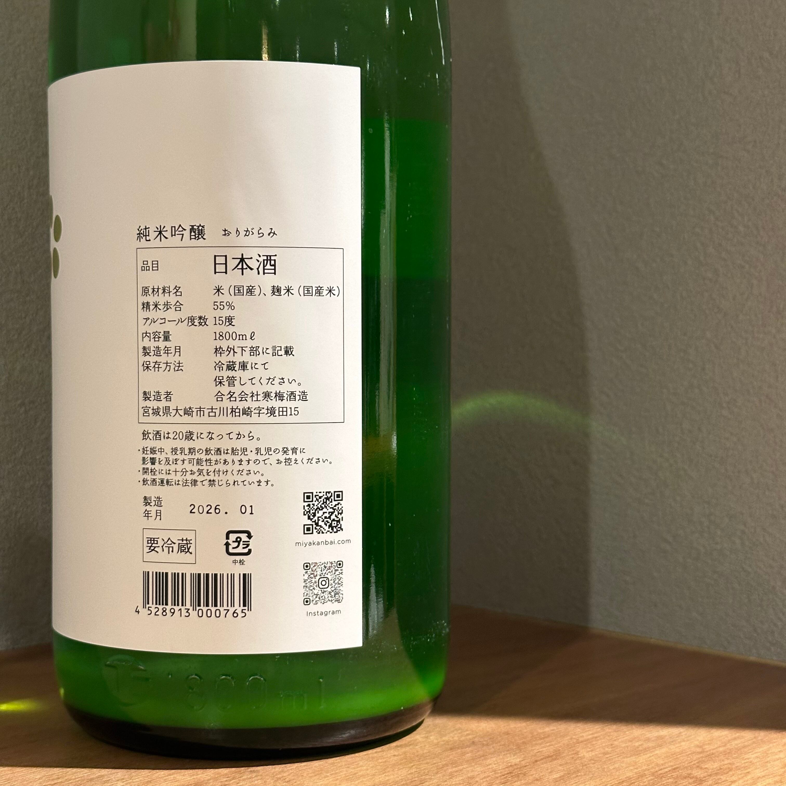 宮寒梅 純米吟醸 おりがらみ生酒 1800ml