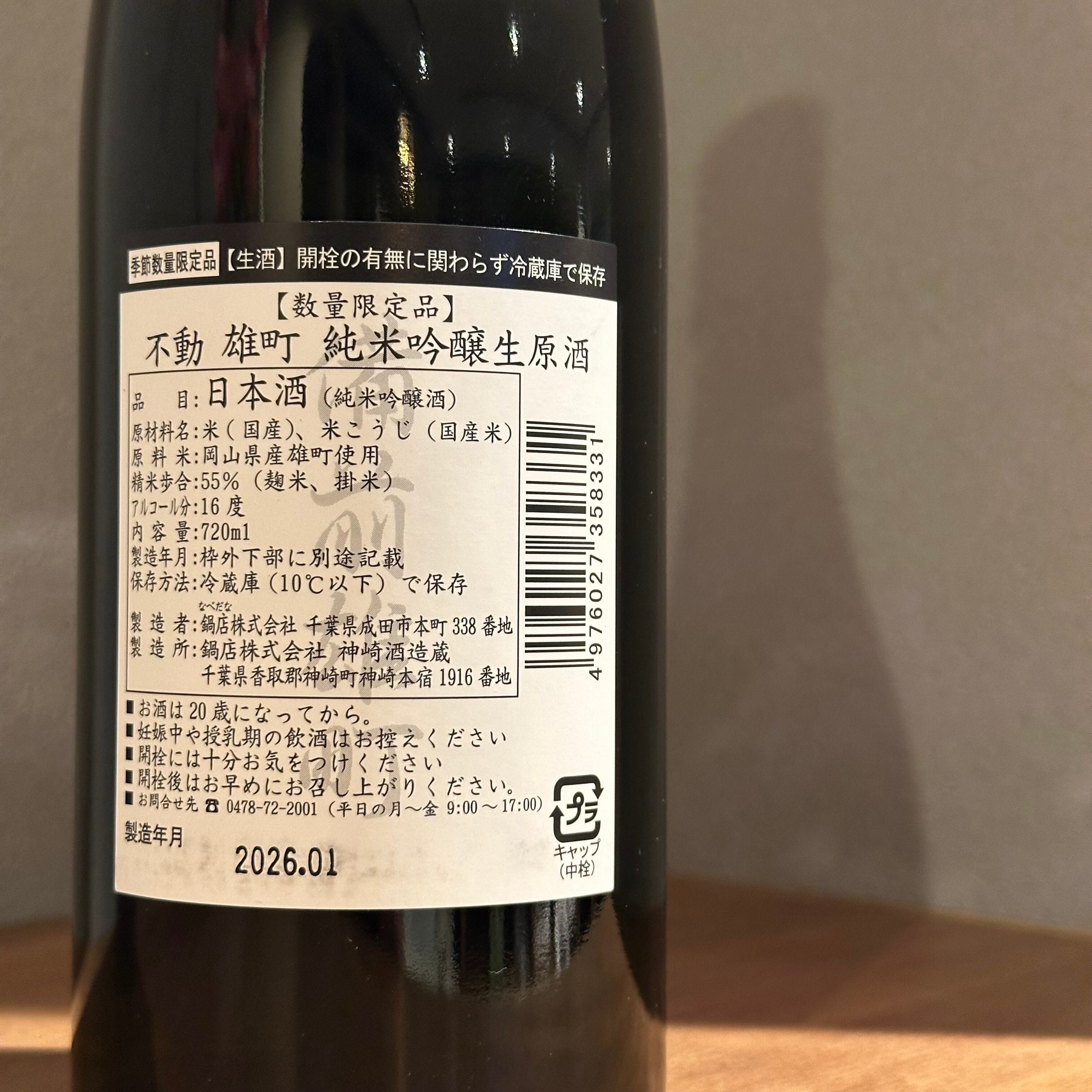不動 備前雄町 純米吟醸 生酒 720ml